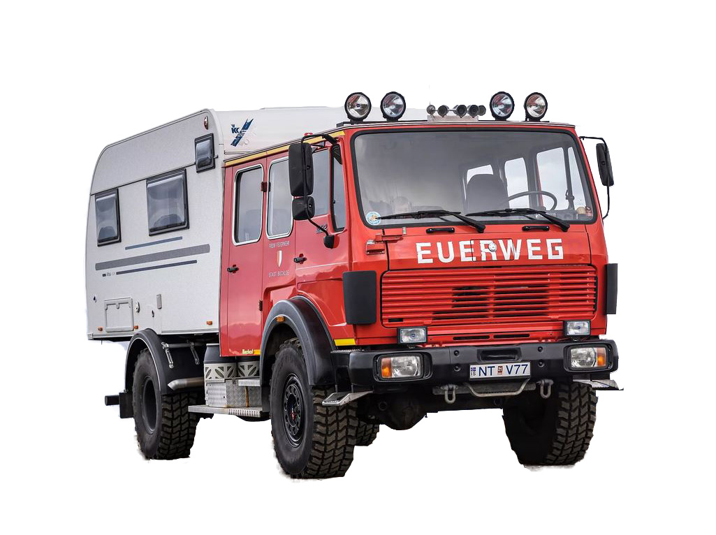 Der Allradwohntruck ist ein umgebautes Feuerwehrfahrzeug auf Basis eines