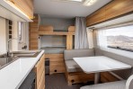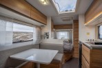 Der Wohnaufbau ist komfortabel ausgestattet mit einer großen Dinette-Sitzgruppe, die nachts in ein Doppelbett umgebaut werden kann, einem großen Doppelbett und 2 Stockbetten.