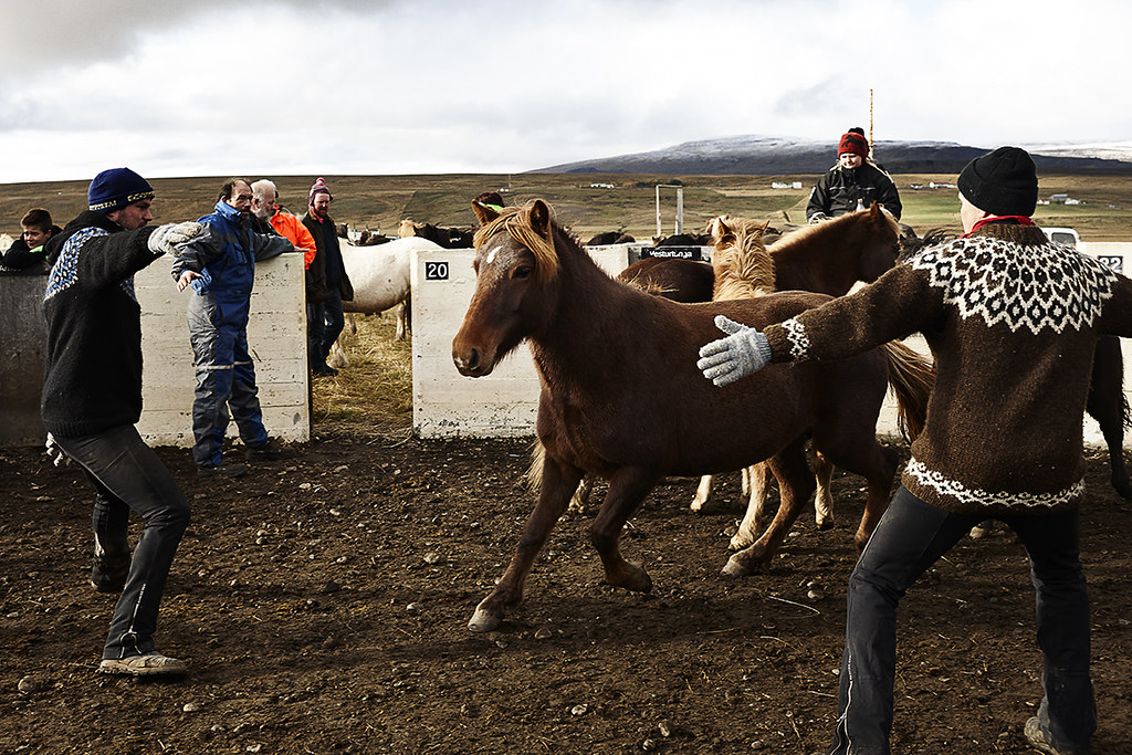 - Sortierung der Pferde im Pferch Víðidalstungurétt