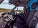 Dieser Mietcamper bietet 3 Sitzplätze im Fahrerhaus und zusätzlich 2 Sitzplätze im Wohnraum, die entgegen der Fahrtrichtung angeordnet sind.