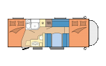 Das Reisemobil verfügt über einen Alkoven mit 2 Schlafpätzen, eine Sitzgruppe die zu einem Doppelbett umgebaut werden kann, sowie über ein Doppelbett im Heck. Eine Naßzelle mit Dusche / WC und eine Küchenzeile mit Gasherd und Spüle sowie großem Kühlschrank sorgen für Komfort.