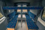 Die Küchenzeile ist ausgestattet mit einem Gaskocher, einer Spüle mit Kaltwasser und einer Kühlbox. Eine Webasto-Standheizung sorgt für angenehme Wärme. Die Sitzbank kann schnell in ein Doppelbett umgebaut werden, das obere Bett wird tagsüber im hinteren Teil des Hochdachs zusammen geschoben und kann abends schnell in die Schlafposition gezogen werden. Die Kopffreiheit des oberen Bettes ist nicht sehr hoch.